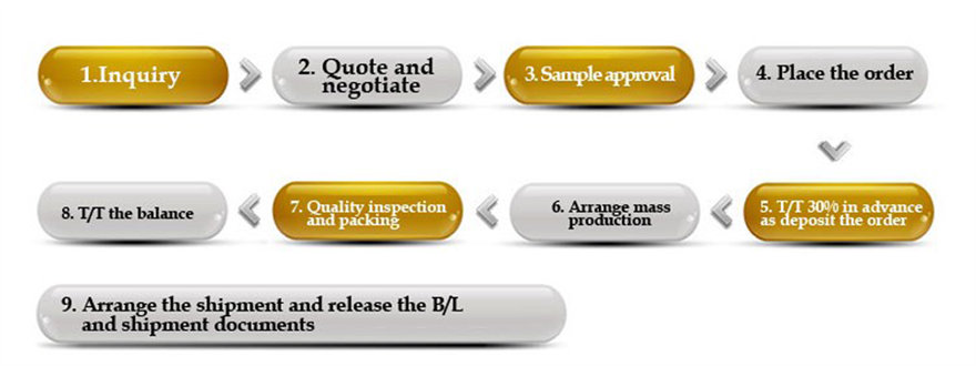 2)payment:T/T(30% deposit,70% before shipping),B/L,